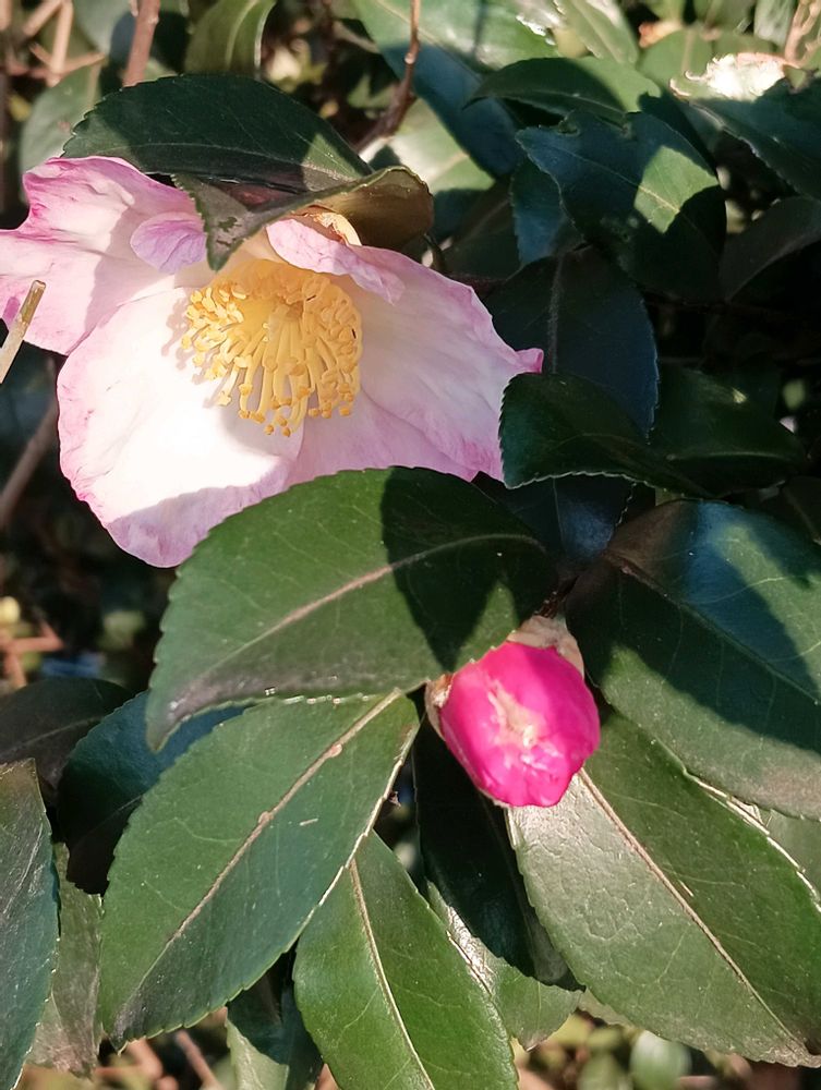 山茶花と椿の花は良く似ているけど🌿の大きさが違うから分かるよね〜〜〜
