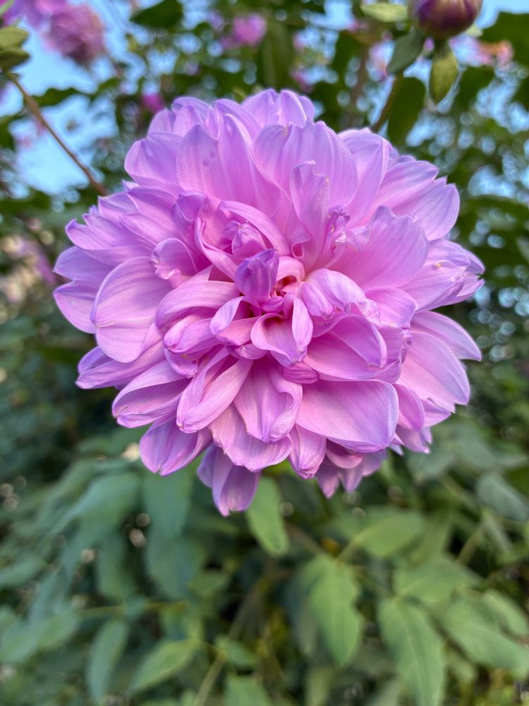 夕暮れ時、八重咲きの「皇帝ダリア」をパチリ!📸🌸🌿😄🤗🌇👌