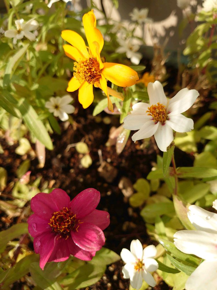 ジニアの三色がフレームに入るように撮ってみました🤍💛❤️😉🤭