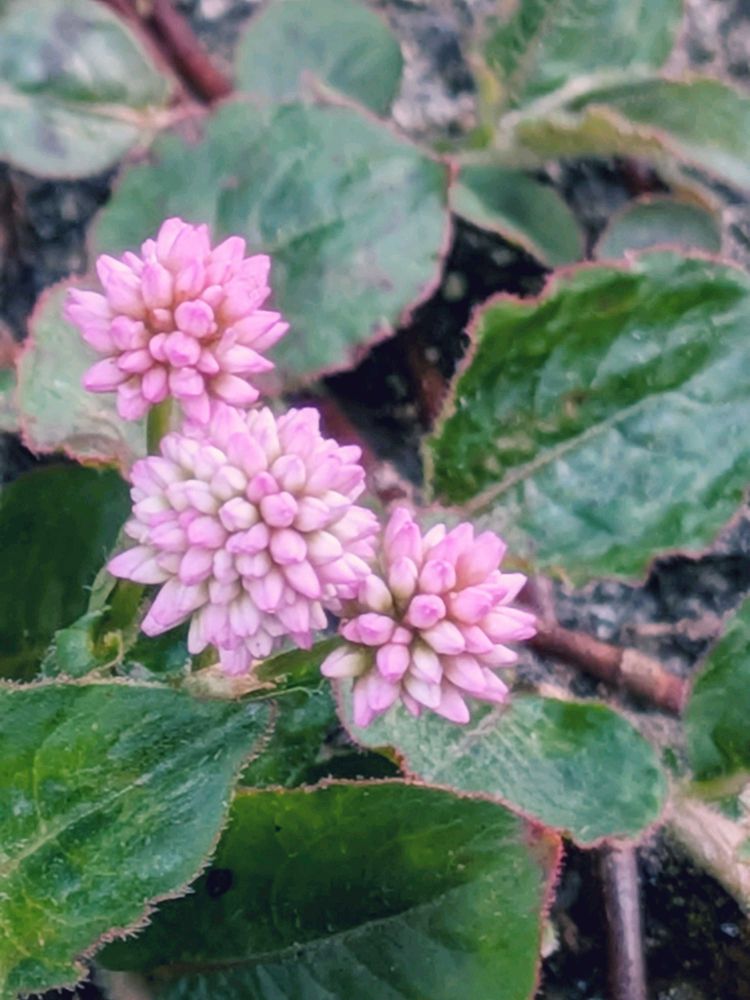 脇のヒメツルソバさんと菊さんがエールを送って🩷
