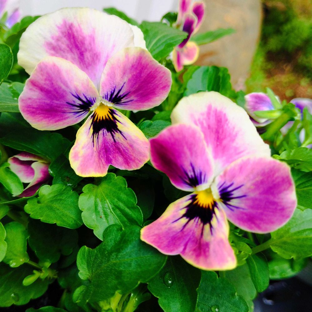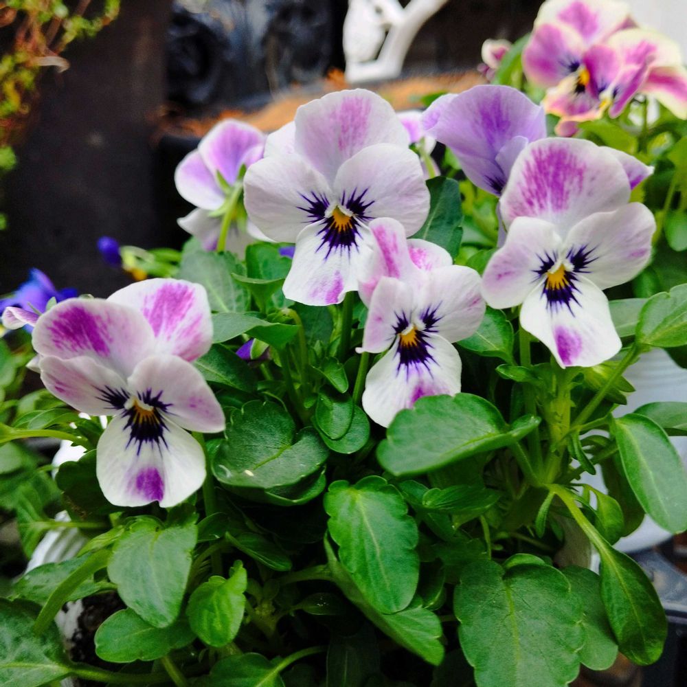 先日新たに迎えた良く咲く虹色スミレとビオラ🪴