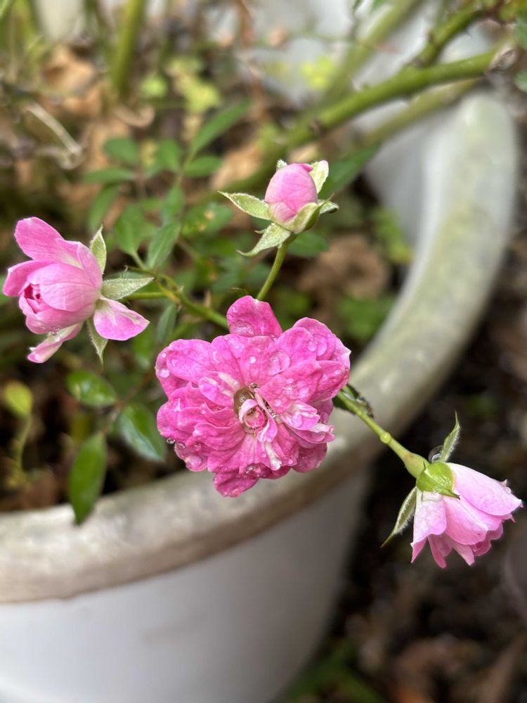 4枚目 あれ⁉️今咲くの⁉️目覚めちゃったミニバラ舞姫さん🌹地味に一枝咲いちゃってました😆