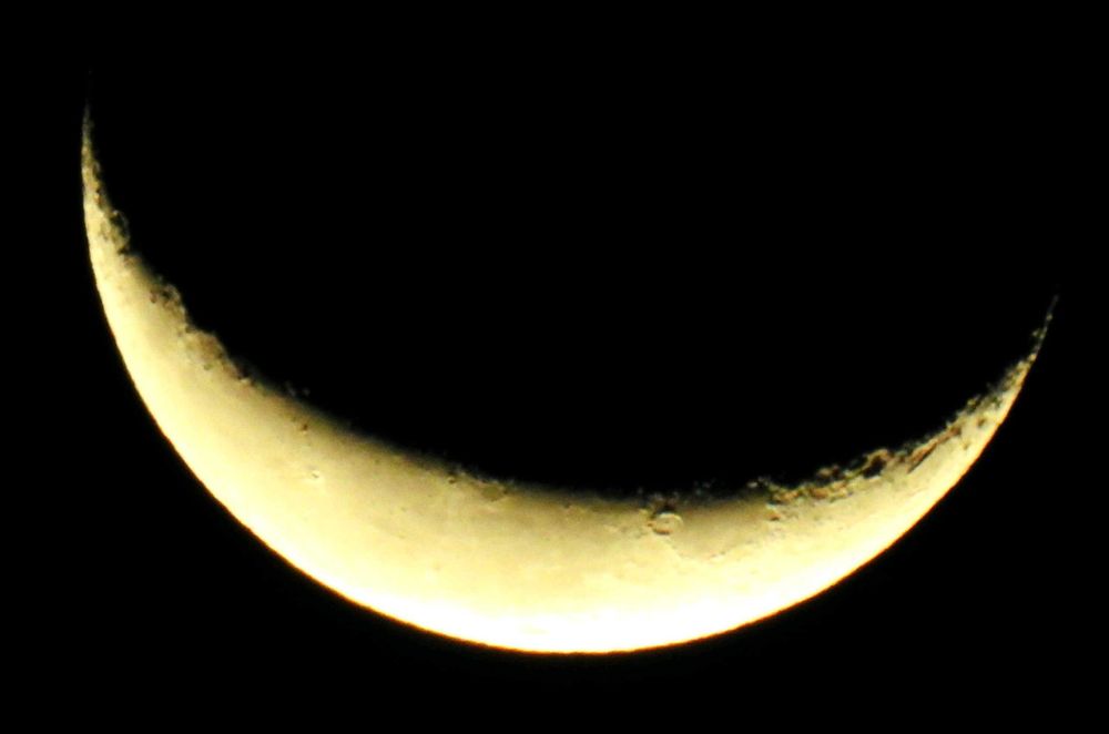 月の出(2:23)からちょうど1時間後、東微南の低い所、ほとんど水平状態(下側)の三日月です‼️😄