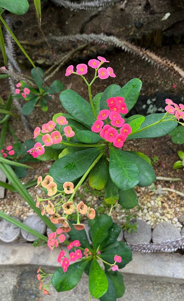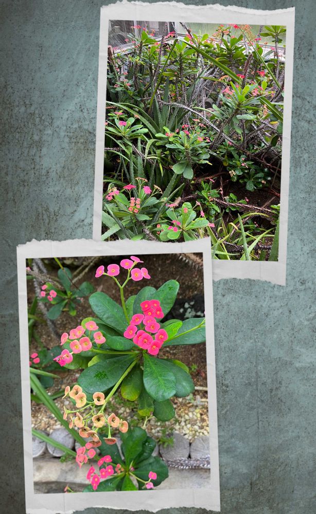 コラージュ有りと無しで、投稿しますね🤳✌️ 因みに、1枚目のコラージュ有りの写真と2枚目、3枚目のコラージュ無しのハナキリンは同じです😆👍🌵🌿🦒🌸 綺麗で可愛らしいお花です🌸🌸💕💕🥰🥰 茎のトゲは鋭く恐しい感じですが😅👍✨🌸🌵