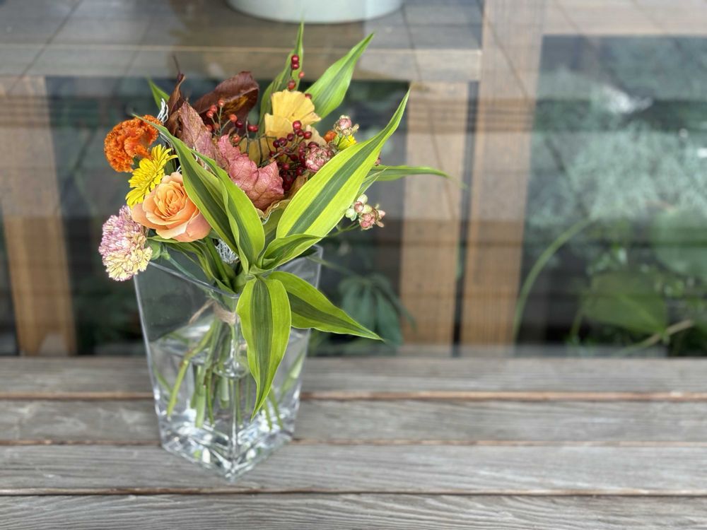 Instagramでササっと生けるのを見てカッコいい❣️って思っていました💐