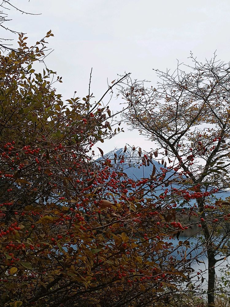 3⃣ 富士山をバックにウメモドキ