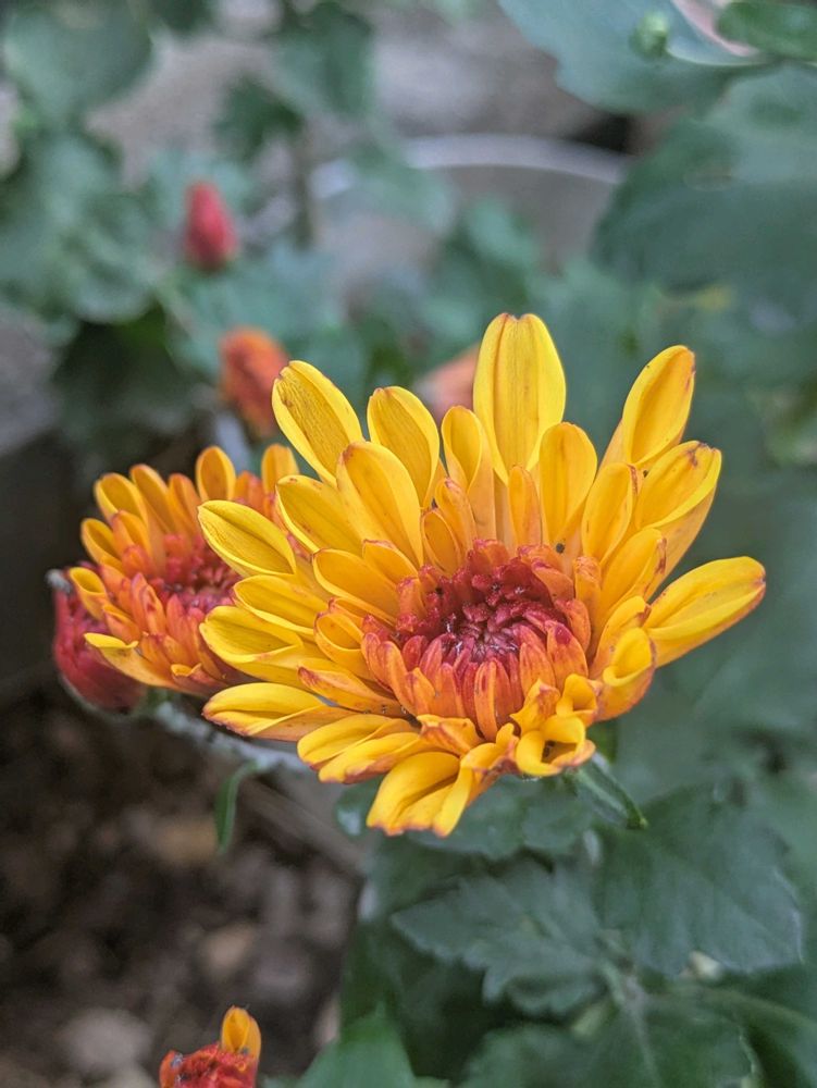黄色いマムは、真ん中赤で、元気が出ます。💛♥️💛