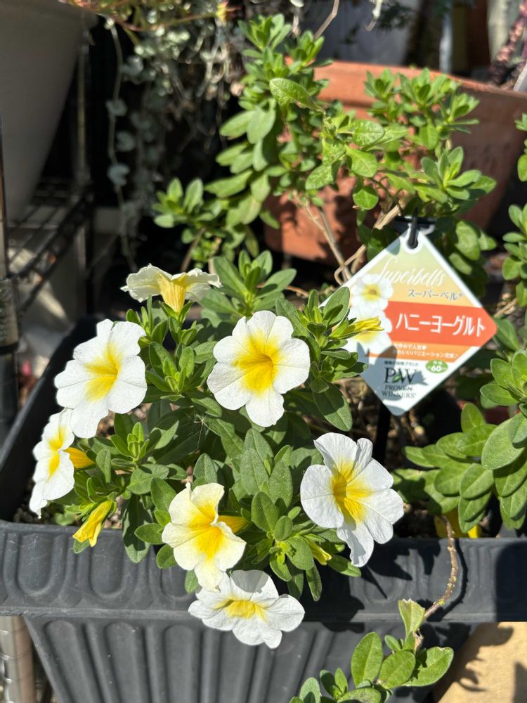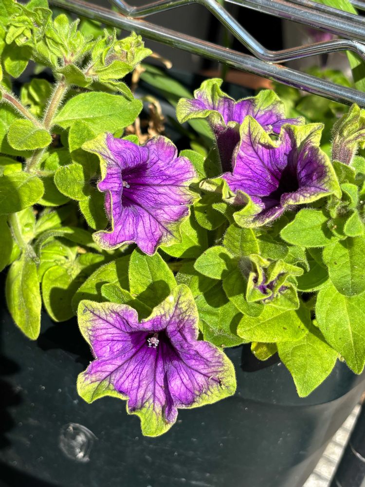 ②③ダメになったと思った時もあったけど涼しくなってたくさん咲いてくれてるペチュニア真輝(まさき)💚💜とハニーヨーグルト🍯