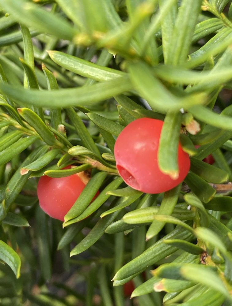 2.3枚目は、北海道大学構内で出会った、はじめましてのイチイの実🔴