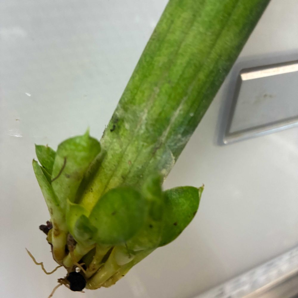 水で栽培中のサンスベリア•キリンドリカから子どもちゃんが出て来たので喜んだけれど、普通の子!!これから丸くなってくれるのかしら?