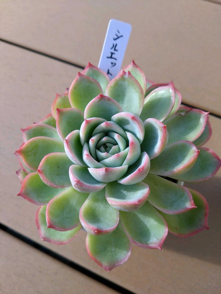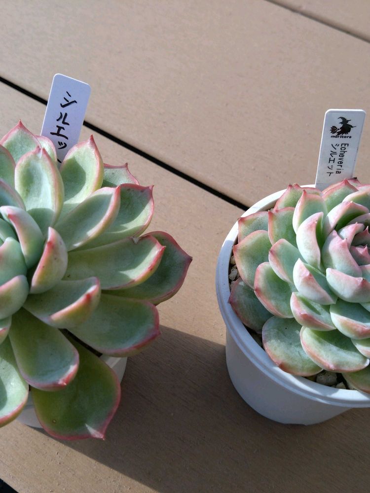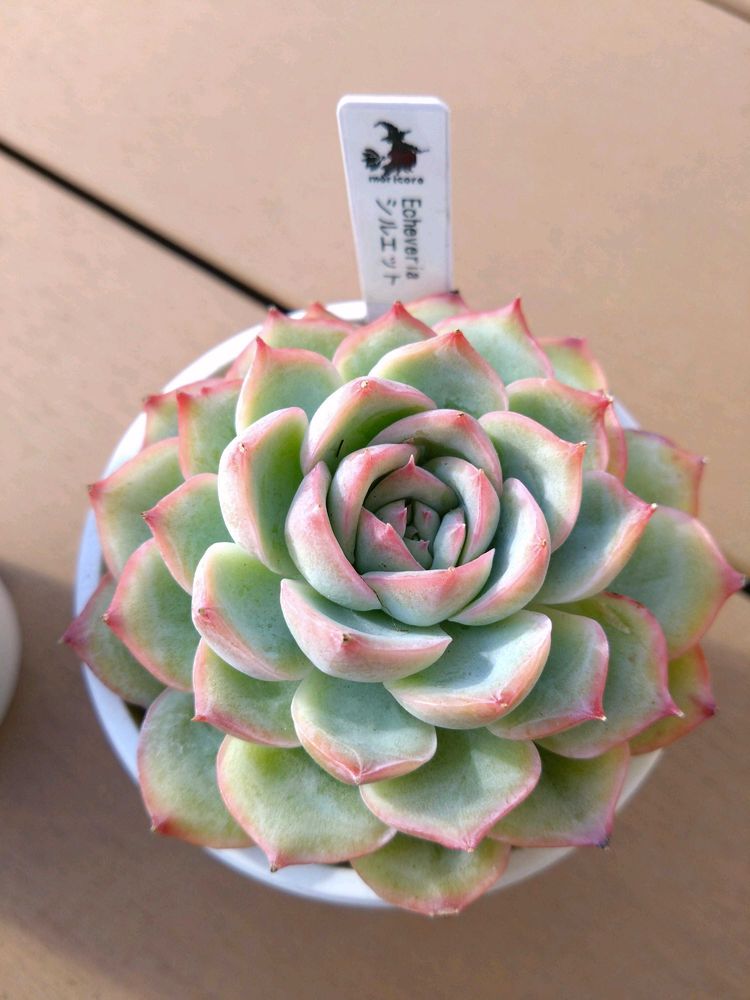 シルエットの縁がほんのりピンクに染まってきました。形、色などが大好きで気がついたら複数買ってしまってます。1番好きな多肉ちゃんかもしれません😻