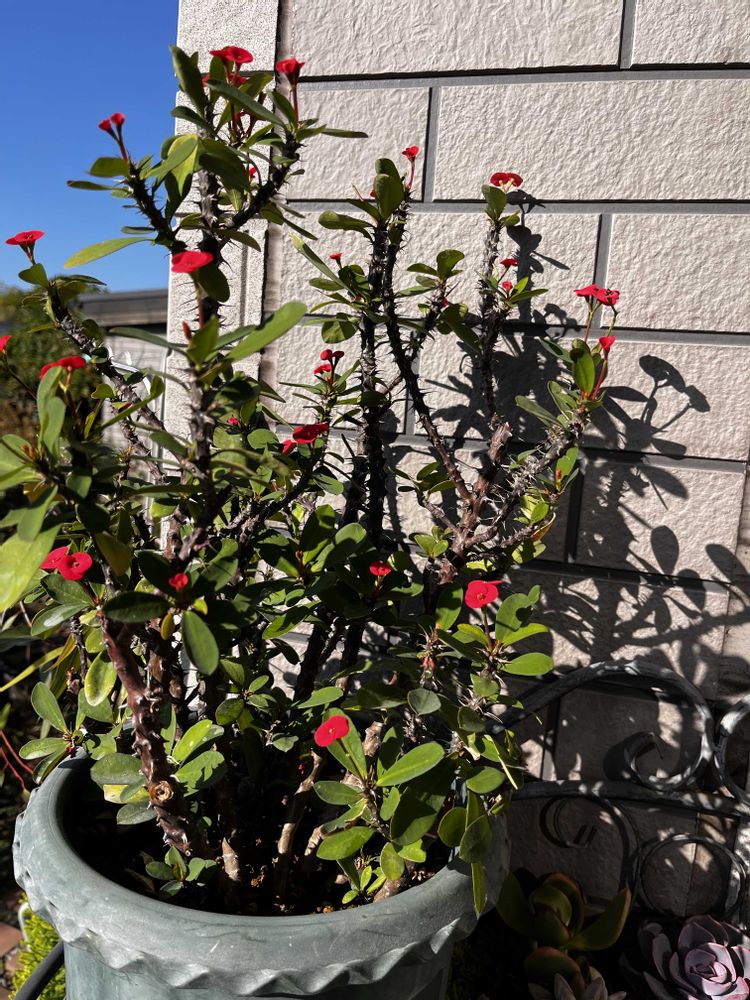 長い事 育てています 赤いハナキリンですが お水のやり過ぎかしら?ちょっと 花数が少ないです
