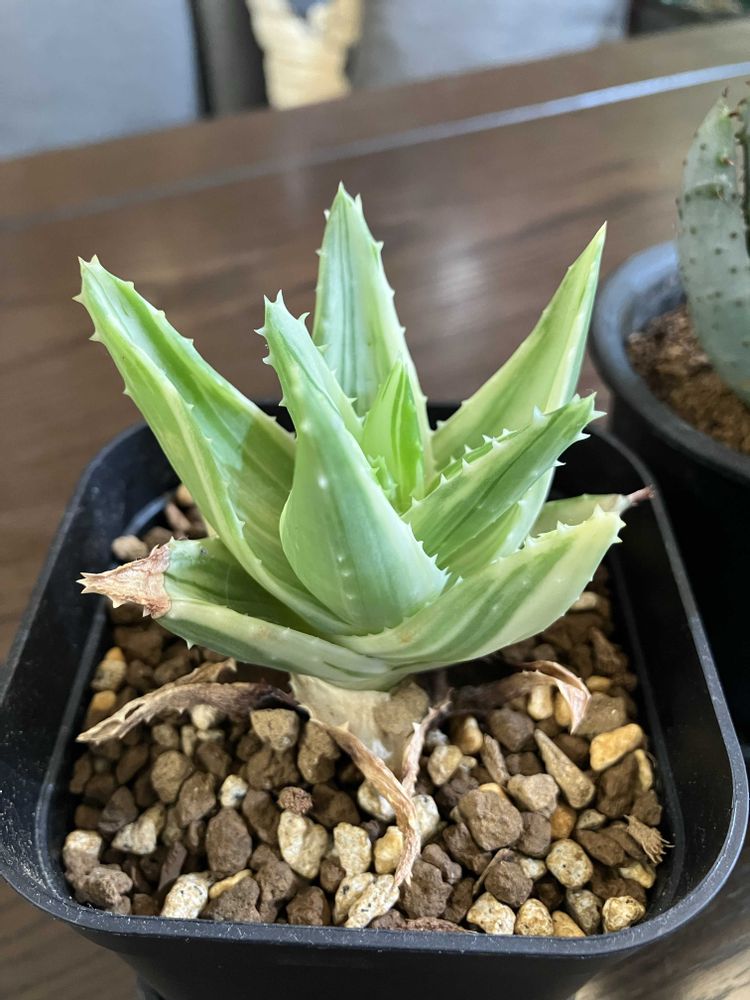 不夜城錦とも言うんだっけか、この子も激しくカイガラムシにやられてお迎え時より小さくなっちゃいましたた😓ライツィーは徒長しちゃったかなぁ😓2人ともなんかすんません(笑)😅