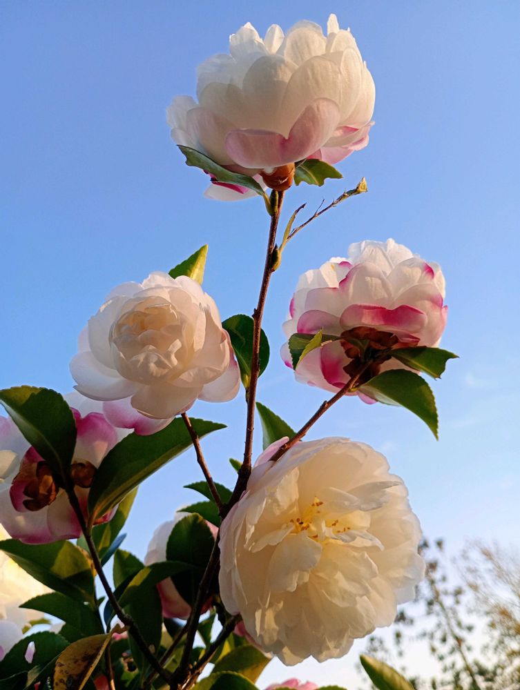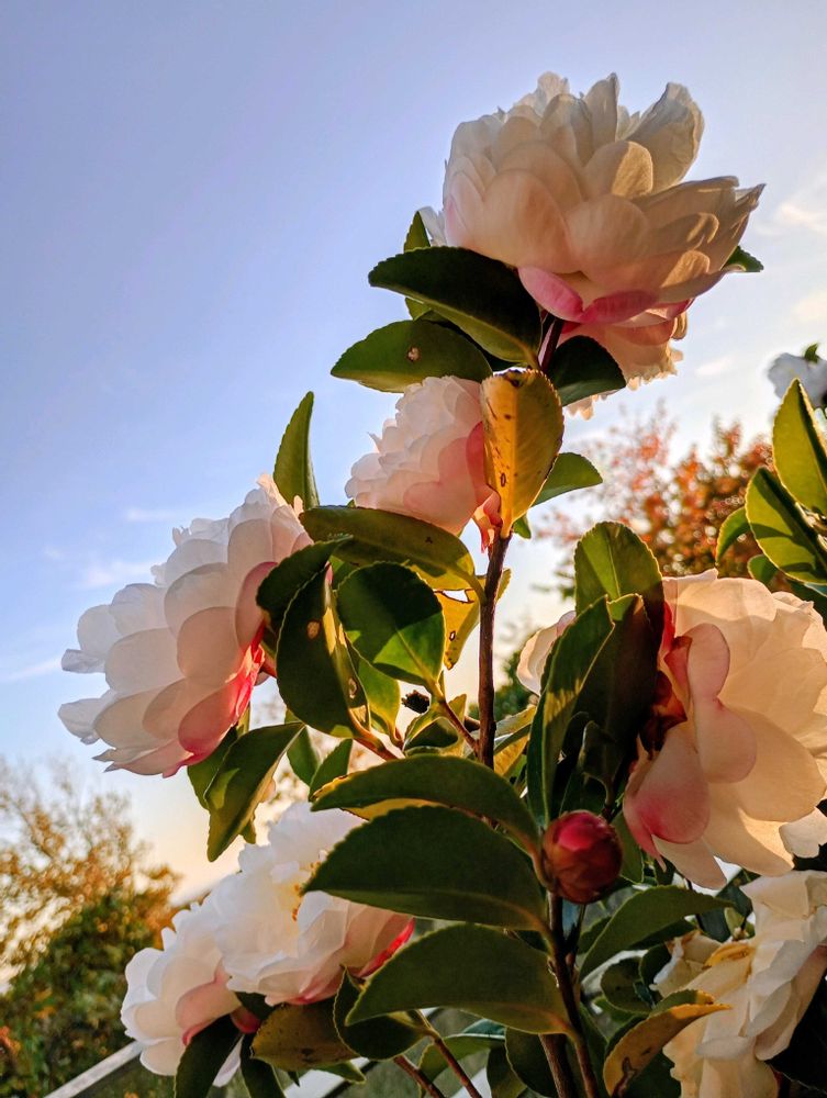 🌇夕陽を浴び、満開の山茶花📱💕