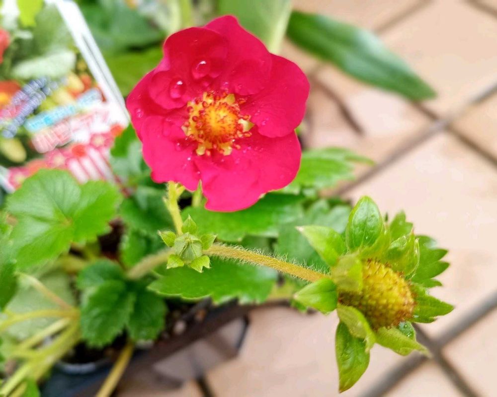皆さんの写真から、憧れていた 赤花の💮🍓苗2ポット🌱🌱到着🥰