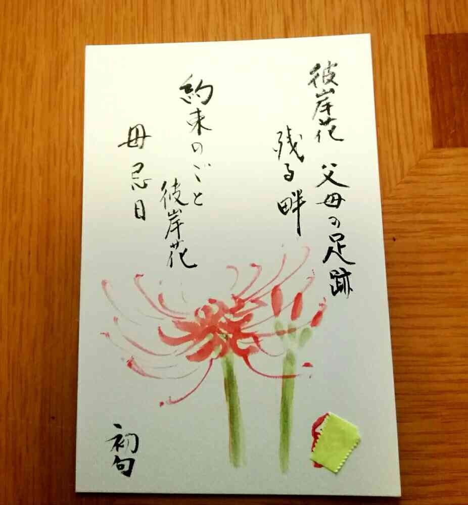 くまちゃんさんのヒガンバナ,絵手紙,頑張れ❗ 日本の投稿画像