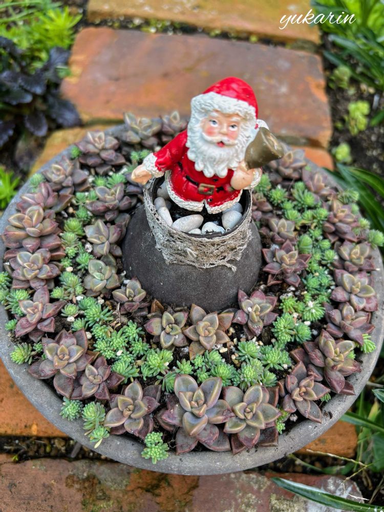 ちっちゃなブロンズ姫とセダムを使ってサンタさんのお立ち台付き寄せ植えを作りました🎅