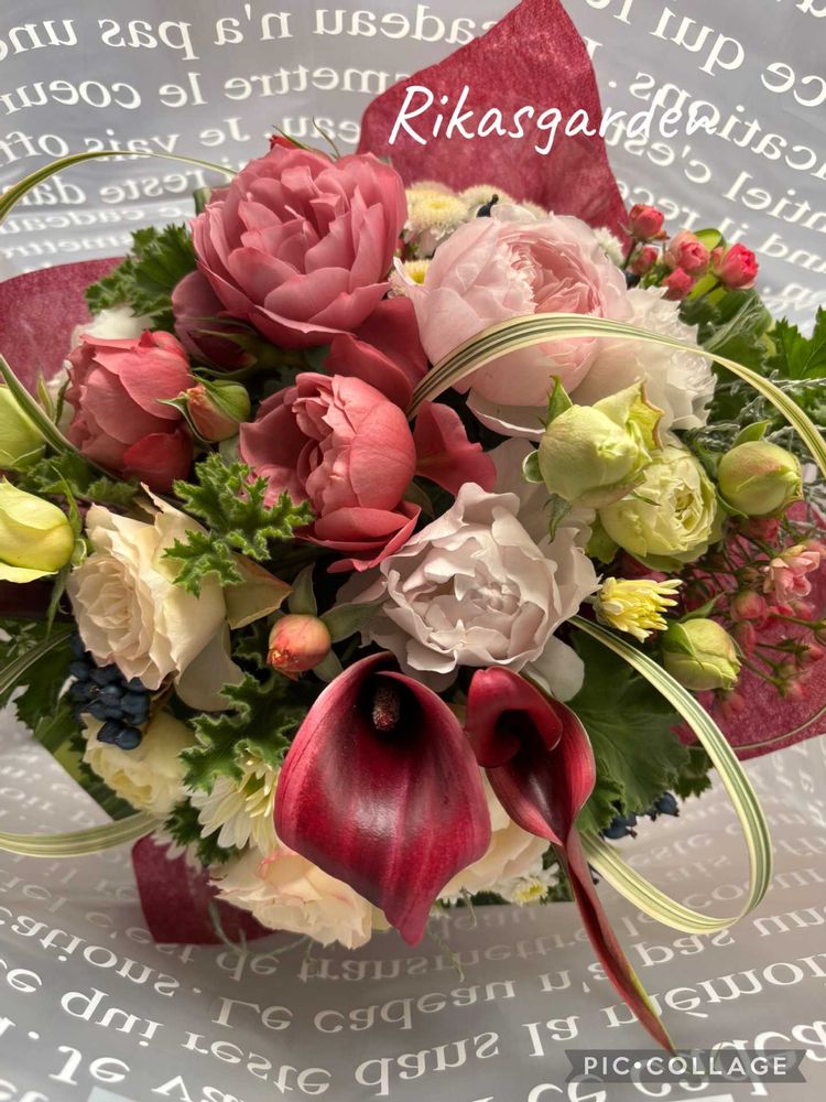 昨日は、「あおい」ってバラや白い菊が咲き始めたおかげで、豪華に出来上がりました✨
