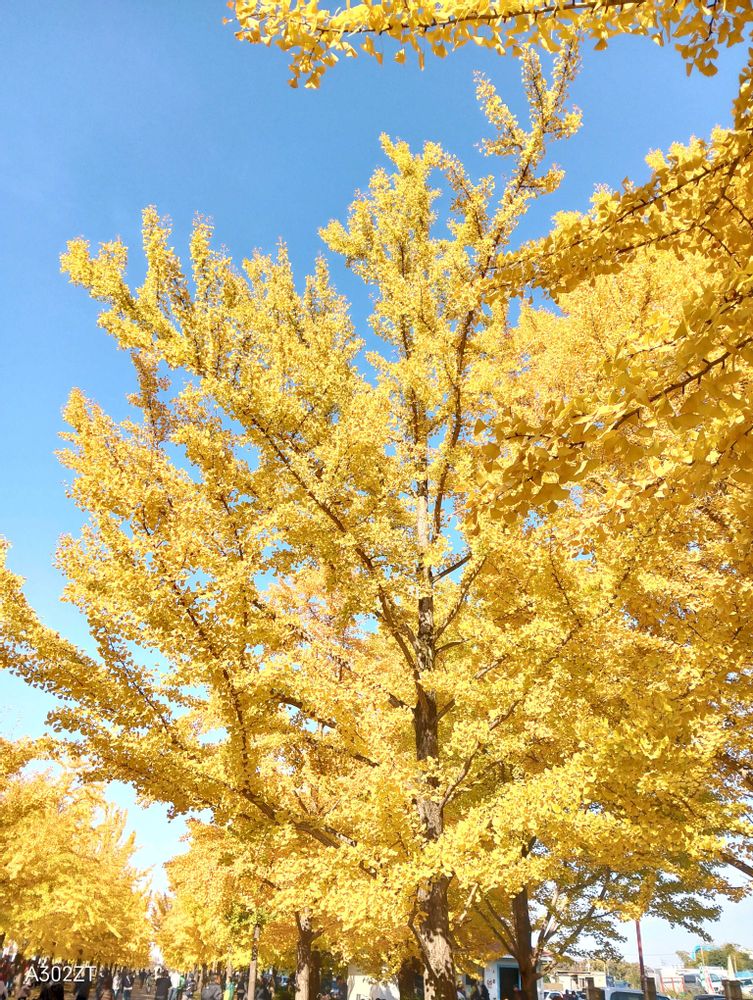 青空に銀杏の黄色が一際明るく映えて素敵✨✨🤗