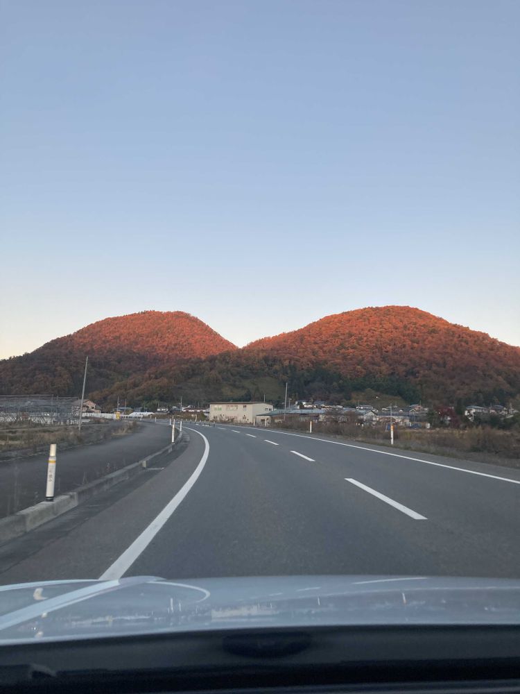 山の紅葉が夕陽に照らされて綺麗でした🍁