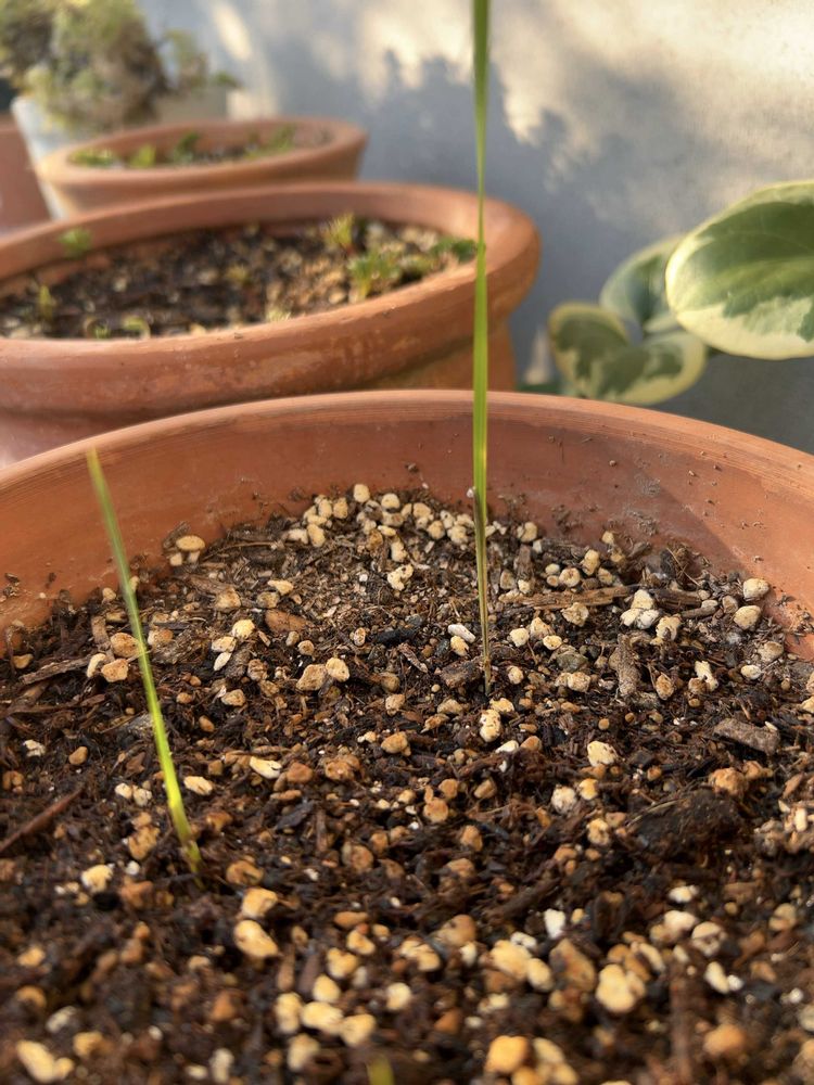 イキシア、きれいなブルーが楽しみですね!でもこの芽吹き方、ぴょーんとしててかわいい〜