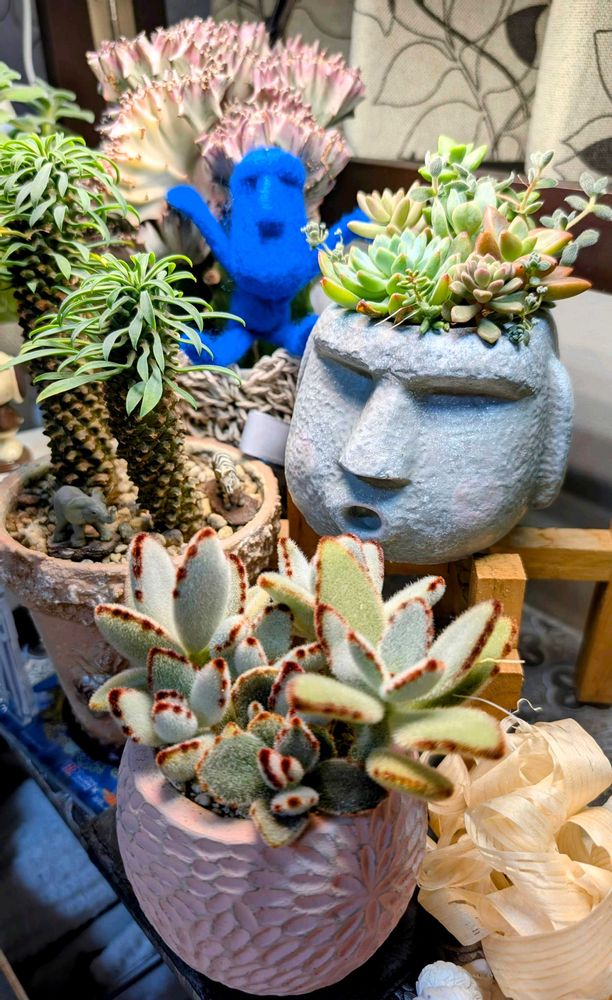 表情も味があって頭の多肉ちゃん達がカラフルで可愛い💕