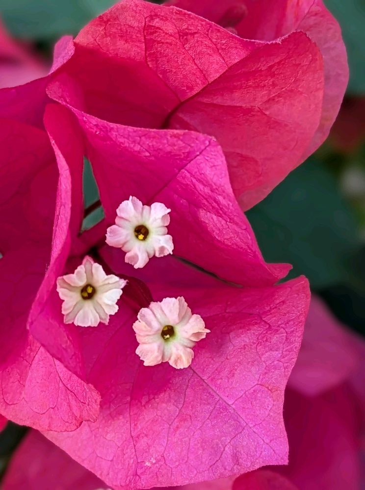 ブーゲンビリアってよーく見たことが無かったけれど、真ん中にペチュニアみたいな三つ子が住んでいるんですね😳🤩❣️