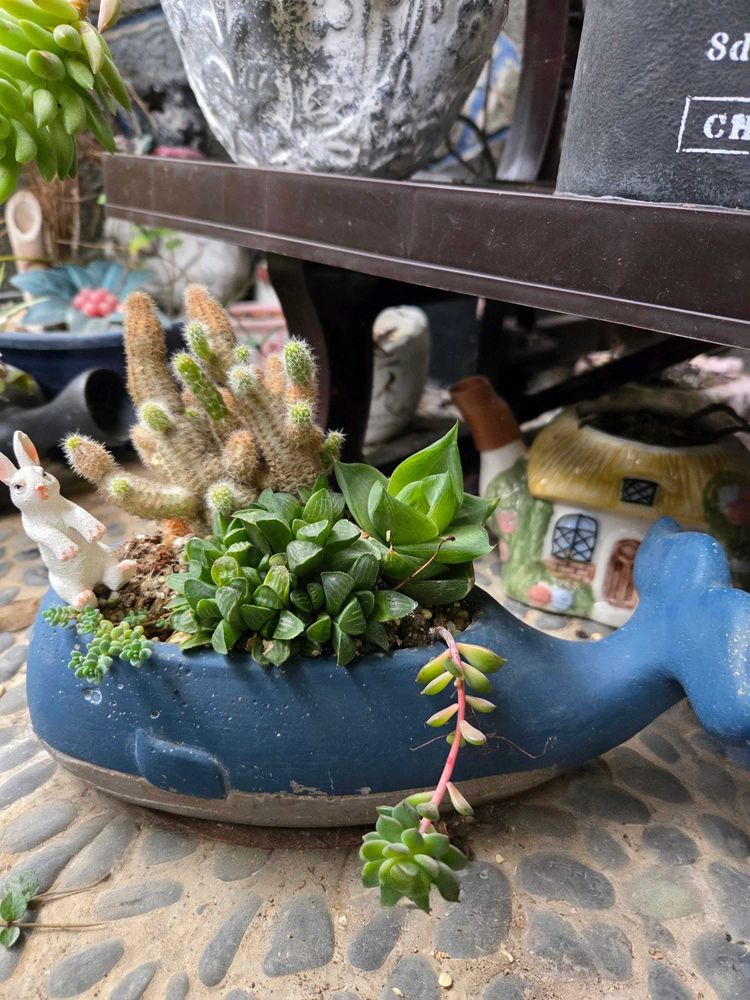 ※クジラ🐳鉢のミニサボテン🌵サン寒いので...赤くなっています😆