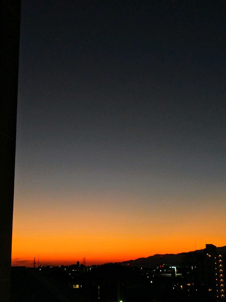 昨日の夕焼け。ベランダが赤く染まり😍これは階段踊り場からの眺め。1日の疲れがとれるような眺めでした💕