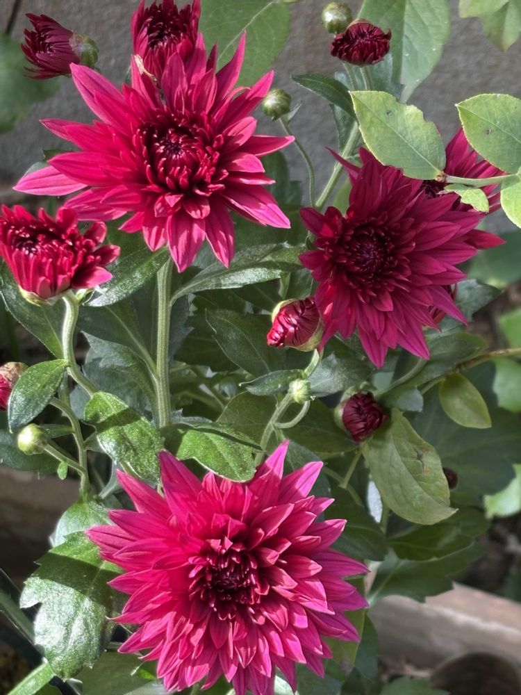 キク、赤い方は八重咲きなのかな,いい色ですね😊