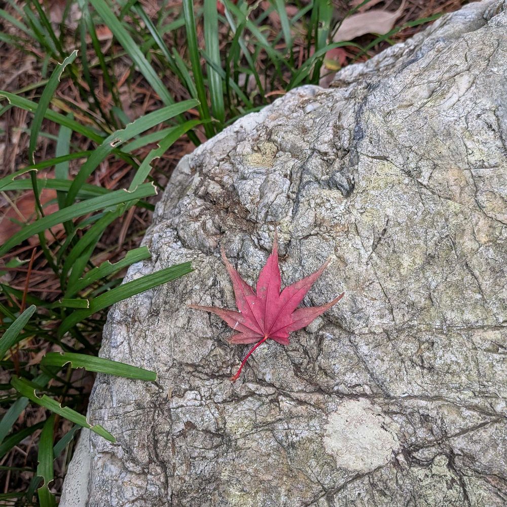 ③庭石に散り紅葉