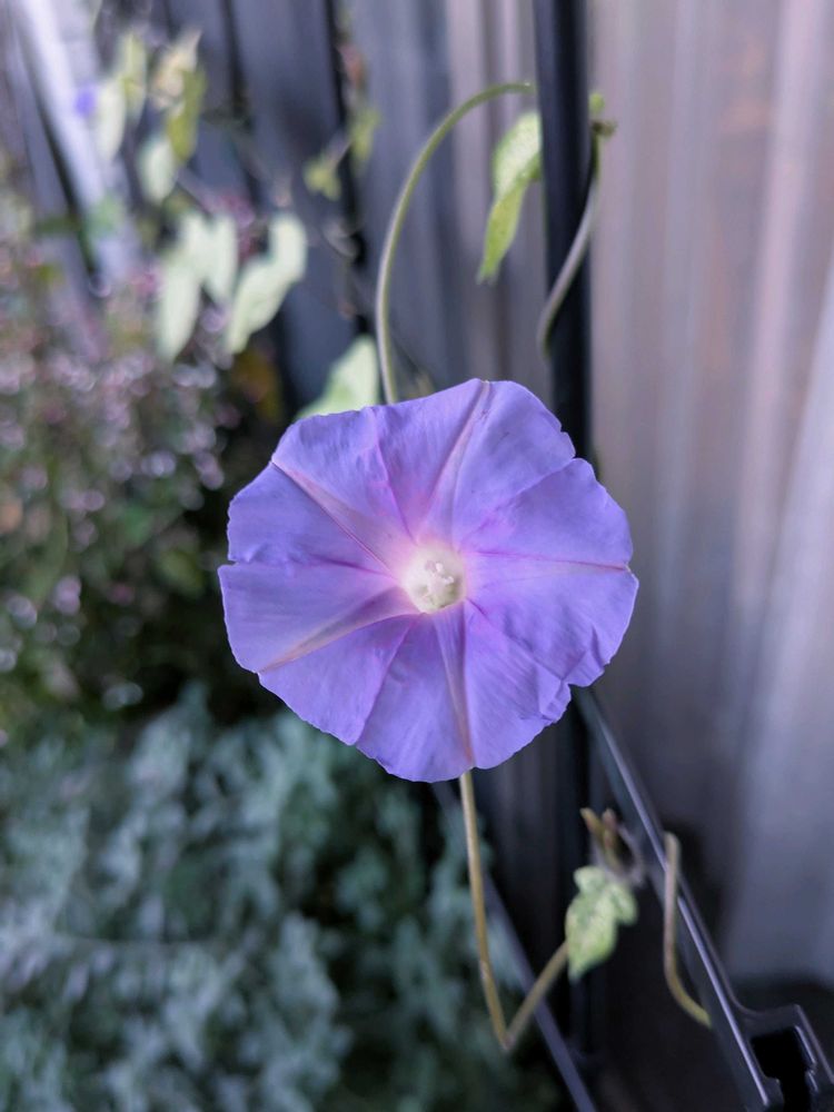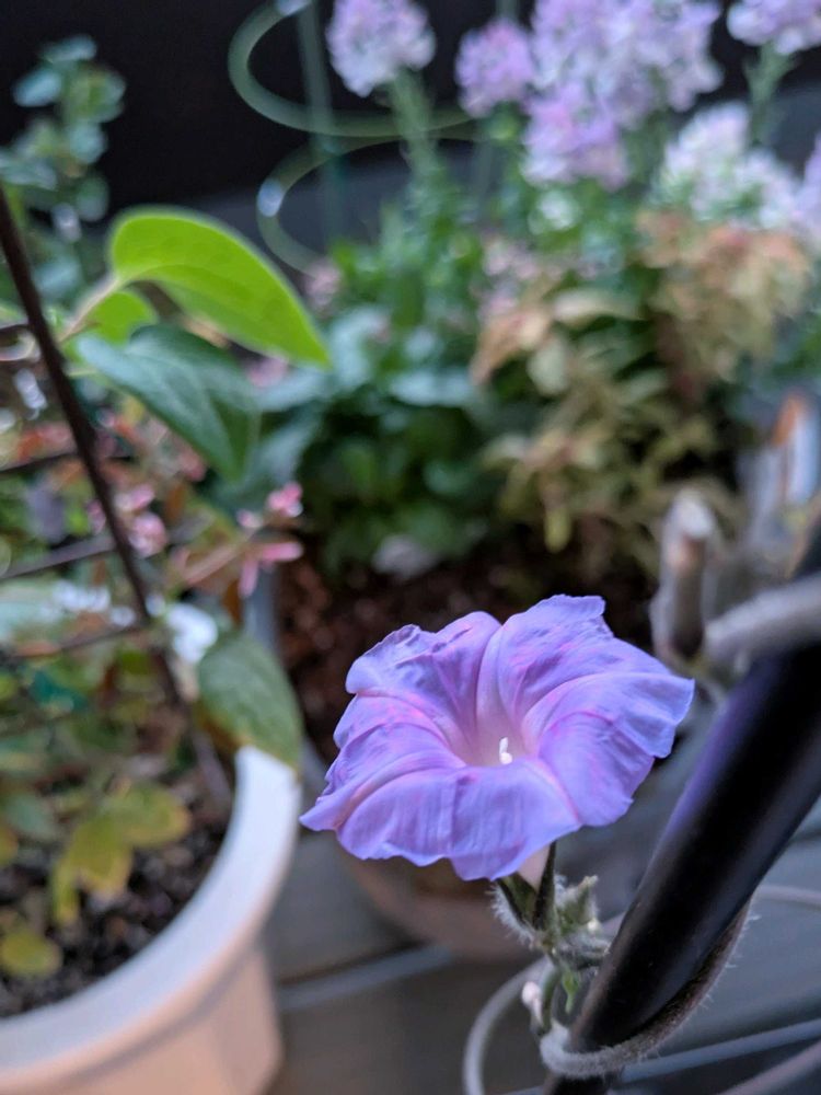 まだ、がんばってる。とはいえ、久しぶりにちゃんと朝顔らしく咲いてくれた。しかも2輪も。蕾は沢山あるんだけど、寒くて大きくなれなかったり、半開きで終わってしまうみたい。
