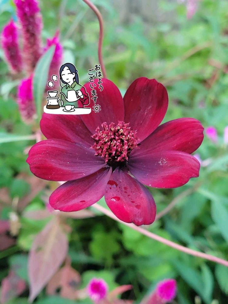 朝チョコレートコスモスが可愛いまだ元気に咲いているよ