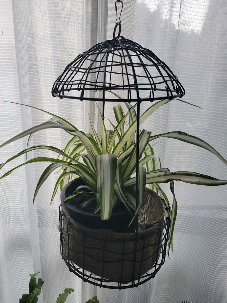 鳥かごプランターにオリヅルラン、素敵に収まってますね😉