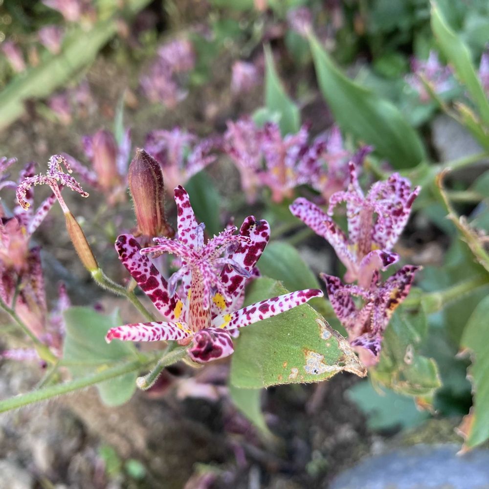 今日は朝から日差しが眩しいくらいの秋晴れですよ ~実家の庭に咲いていた花💕ホトトギスちゃん?可愛いですね😍