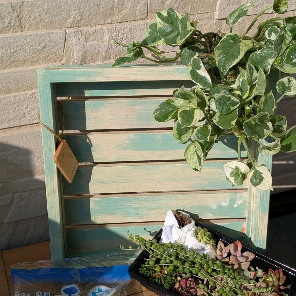 多肉寄せ植え用の苗と、大好きおやつ、トレイ📤️みたいな木箱