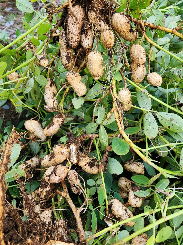 3️⃣4️⃣落花生🥜の葉っぱが黄色くならないので少し掘ってみたら実が付いていました