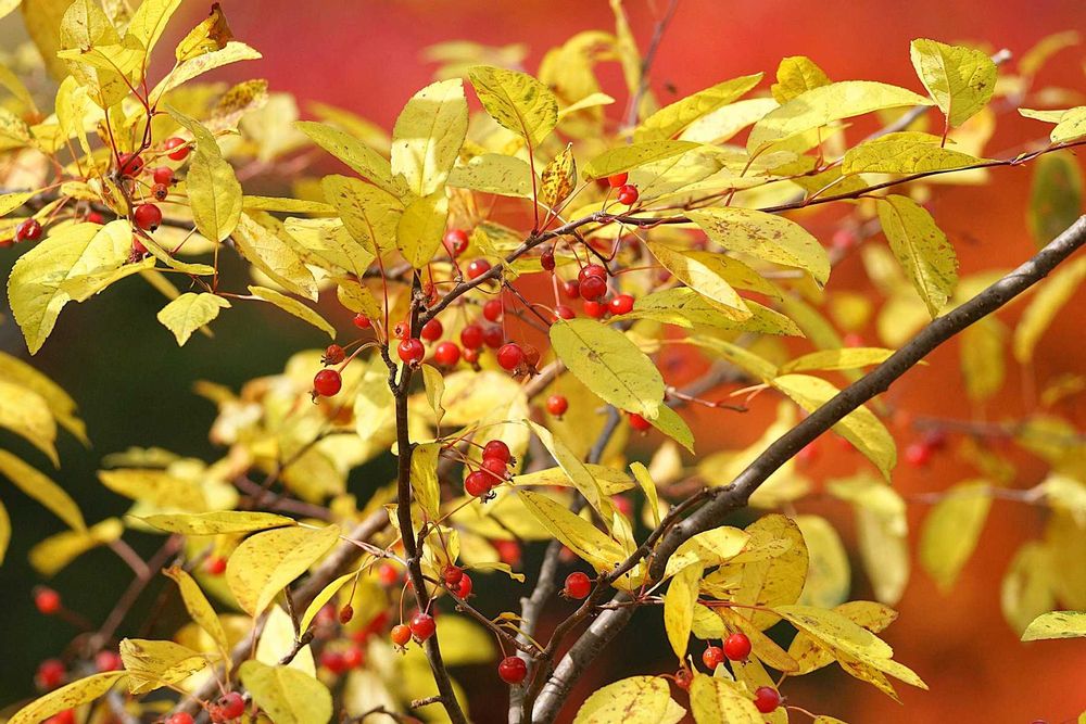 黄色い葉と赤い実 鮮やかですね。 素敵!