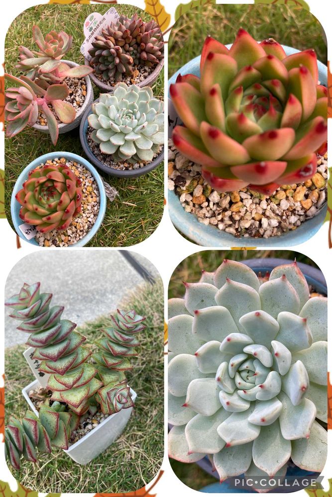 鉢増ししたりで重い💦なんとか移動させました😅多肉さんはほぼ外で管理寒さに弱い子のみまたおいおい室内へ🙄防寒対策して冬越ししてもらおうと思う😊もう秋も終わりですね😢爪がポチッと赤い子や全体的に赤い子みんなそれぞれ紅葉楽しませてくれてます🎵