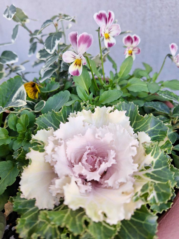 寄せ植えはまだ全体が馴染んでいませんが、ウサギの耳のようなビオラは可愛らしいですよね😍