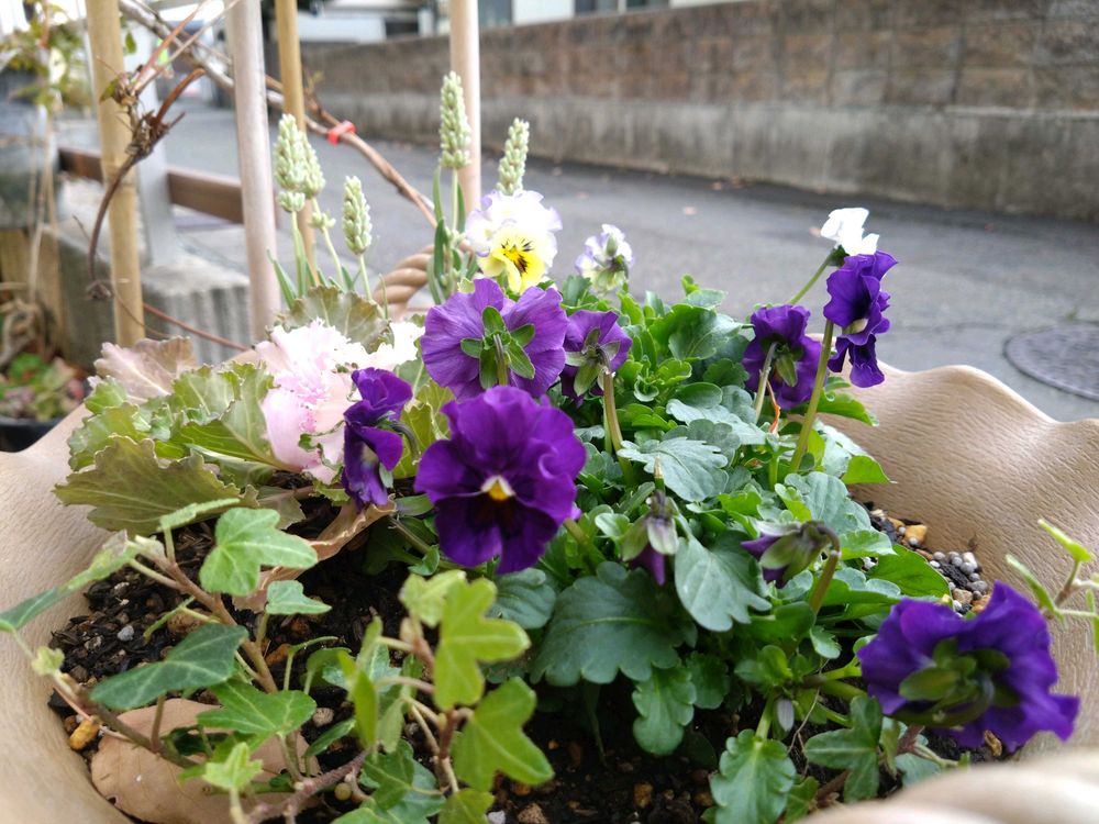 ミルフルの寄植えに、手持ちのラベンダーやヘデラをちょっとアクセントに挿してみました♫