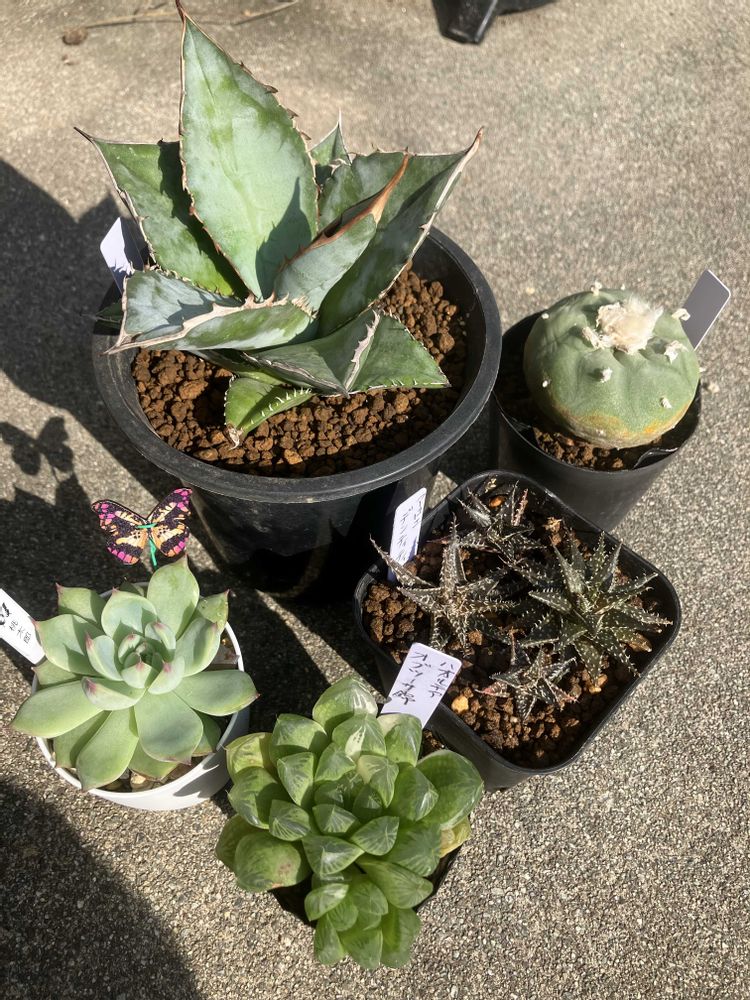 夏に枯らしてしまったエケの桃太郎、お初のアロエ、ハオの斑入り、見つけたら買っちゃうロフォフォラ😂