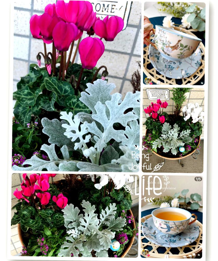 fum fumさんのガーデンシクラメンの寄せ植えも、2色がお互いにひきたてあって、感じの良い仕上がりですね❣️✨✨🙋♀️