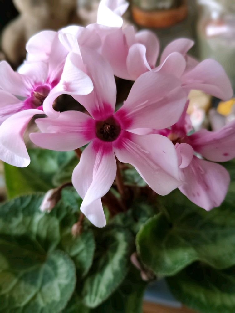 ミニシクラメン イリュージア ピンクラテ、先日近所の園芸店で上向きに咲くお花にひと目惚れ💕