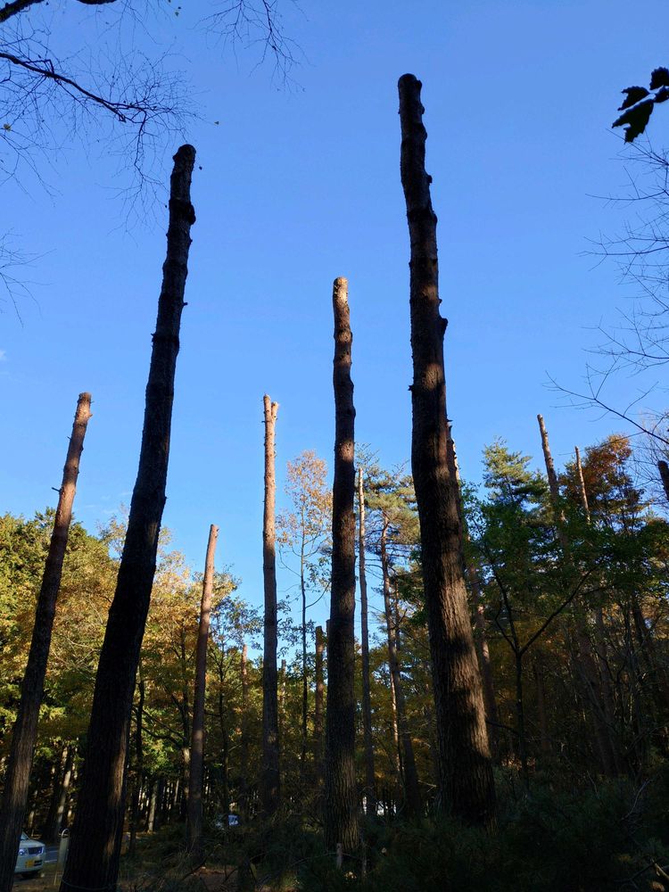 何時もウォーキングをしている、南箕輪村の大芝高原のセラピーロードの、赤松の上部が伐採(多分、松食い虫対策⁉️⁉️)されて、御柱状態(諏訪市の御柱祭り)になっています‼️