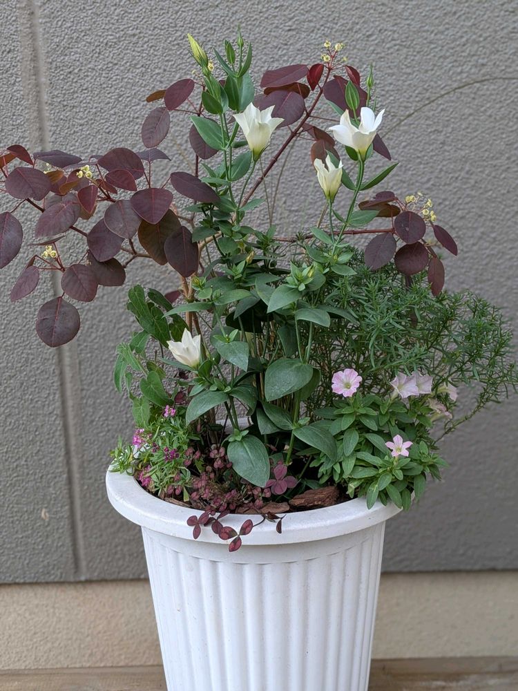 10月に植え付けたトルコキキョウシェリーの寄せ植えです