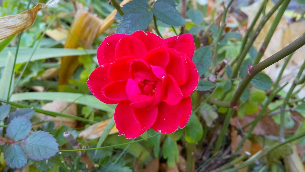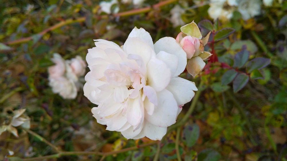 これらの花の写真を撮った今日の札幌の14時頃の気温は3℃でした 羆の出没情報が絶えないため 散歩のルートを変えています 赤いバラは街路樹下の花壇 薄いピンクを帯びた白いバラは公園の花壇で撮影したものです 品種名まではわかりませんが 雪に覆われる前の一時を惜しむかのように秋景色の中 色鮮やかに咲いていました