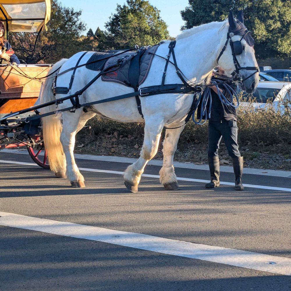 メタセコイヤ並木をお馬さんに乗ってお散歩🐴できるんだって😊せっちゃんも乗ってみたかったけど🐶遠目から見守ります🐴