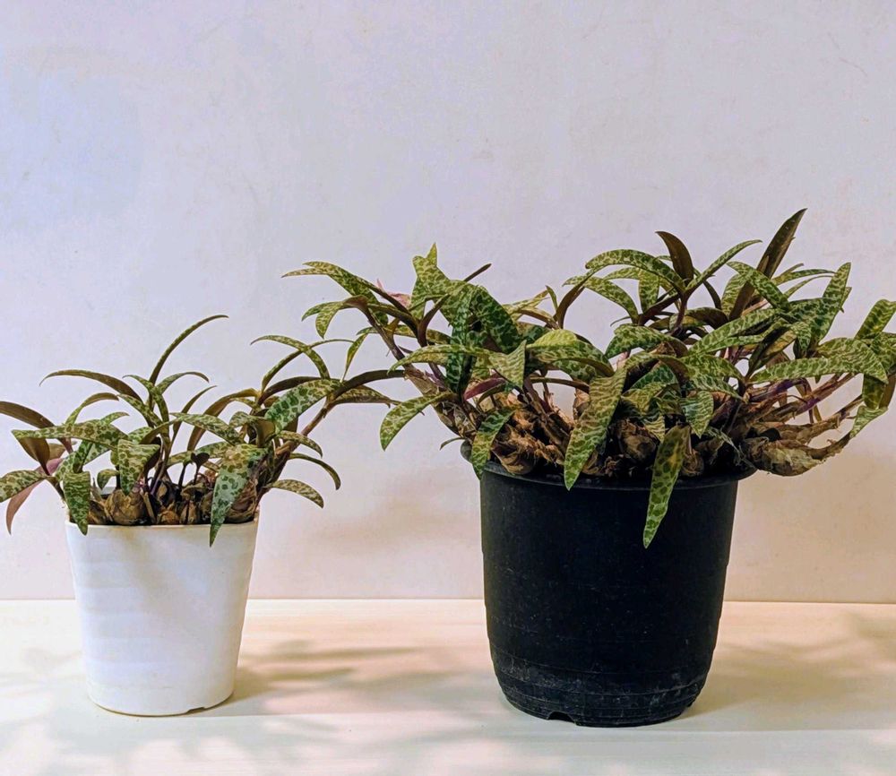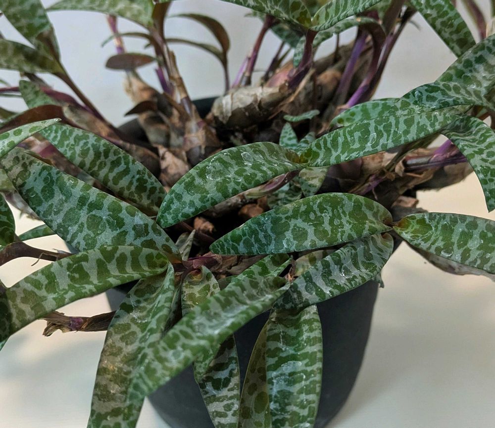 ヒョウ柄、迷彩柄のような葉の模様が特徴的です