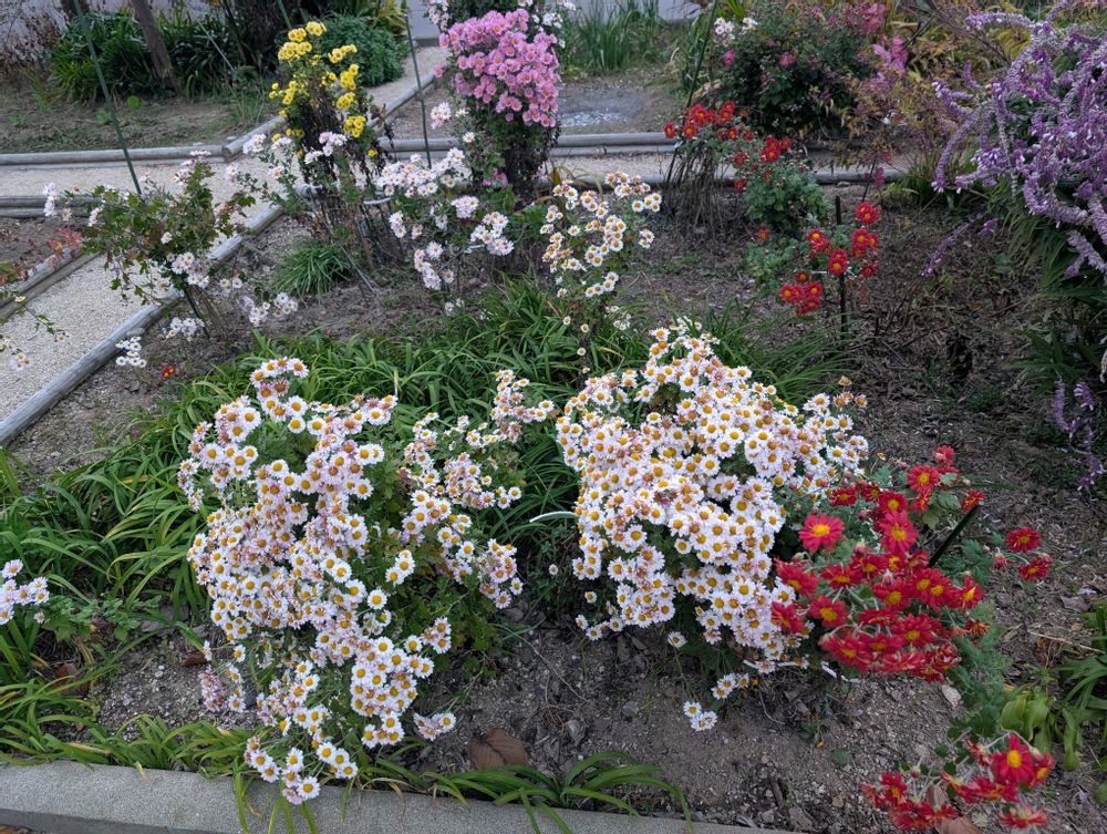 昼間は、小菊に蜂がたくさん止まって、蜂蜜を集めているようです